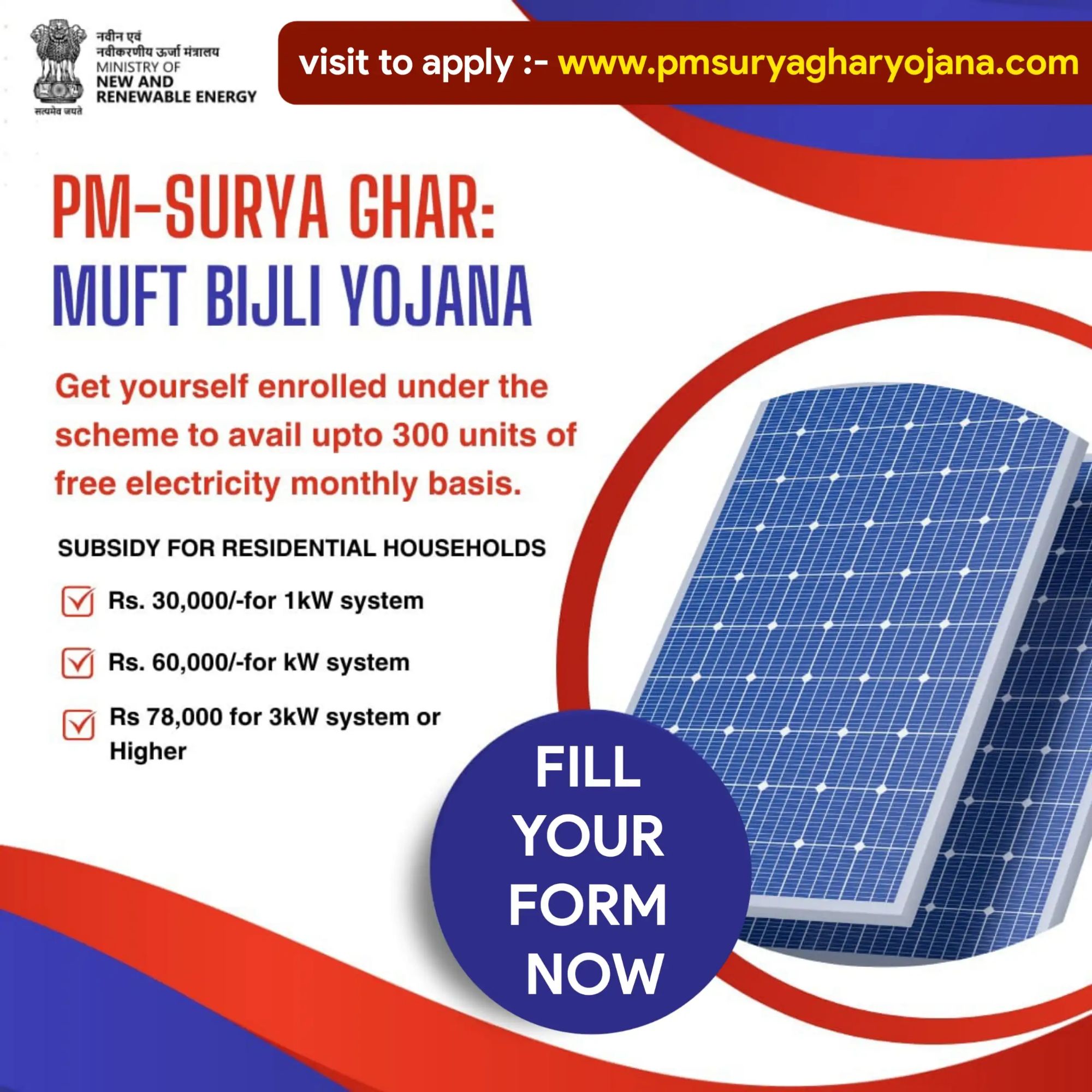 Launched by Prime Minister Narendra Modi in February 2024, the PM Surya Ghar: Muft Bijli Yojana is India's ambitious initiative to power one crore households with rooftop solar panels, offering up to 300 units of free electricity per month. With a whopping budget of ₹75,021 crore and implementation set through 2026–27, this scheme is set to redefine households’ energy independence while advancing India’s renewable energy goals.